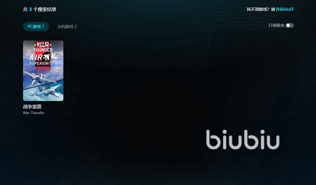 不仅如此,如果战争雷霆进入biubiu暑期限免活动,还能额外获得多日限免福利时间,biubiu在7月8日一直到8月24日期间,每天大厂都会有很多受欢迎的游戏加入到限免的队伍当中,凡是软件中贴了限免标签的游戏,点击打开即可顺利体验到,没有很复杂的操作,如果你已经想好体验哪款游戏的话,赶快来搜索一下吧!无需额外操作!
