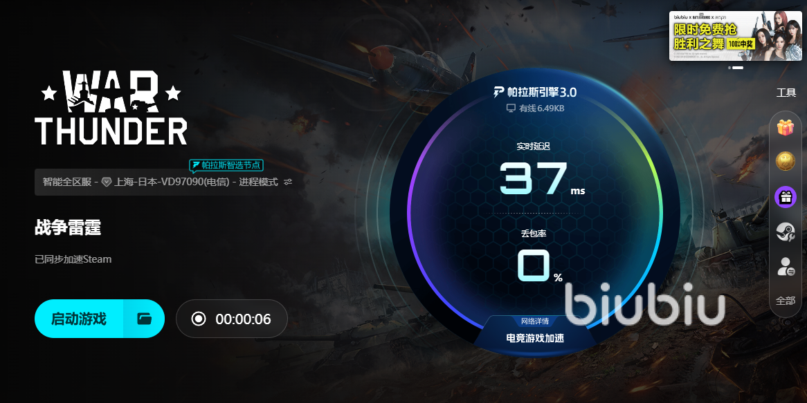 总之,面对战争雷霆加速器哪个好的问题,小编总结的原则有四个方向——网络持久、效率高效、响应快速和操作方便的原则,特别是能让玩家简单操作就能得到需要的效果,并且可以畅玩更多任何地方的游戏最为重要,相信升级后的biubiu能给大家满意的答案。