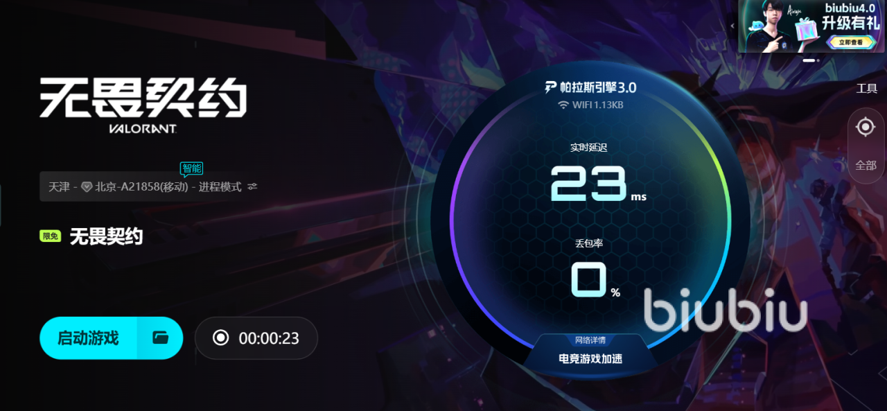 biubiu加速器正是应对这类高频数据交互类游戏网络问题的利器。其引入的帕拉斯引擎3.0,是一项结合智能调度与动态路径优化的核心技术。该引擎能够根据用户当前网络情况、所在区域、游戏服务器位置,实时制定最优连接路径,最大限度减少传输链路中丢包、延迟波动的可能。同时,biubiu联合冠军选手Aixleft,对加速策略进行了系统性实战调校,在应对《无畏契约》这种对“命中判定”极其敏感的射击类游戏时,biubiu可以提供更稳定的数据回传效率,确保每一次开枪、每一个移动操作都精准触达服务器,避免因网络抖动造成错失先机。