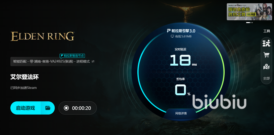 好了,上述便是艾尔登法环闪退的相关描述,玩家在游戏过程中,遇到了延迟高,掉帧情况明显等问题,那么去打开biubiu来帮自己稳定就很合适了,近期对于此有打算,那么就抓紧去点击链接安装吧。