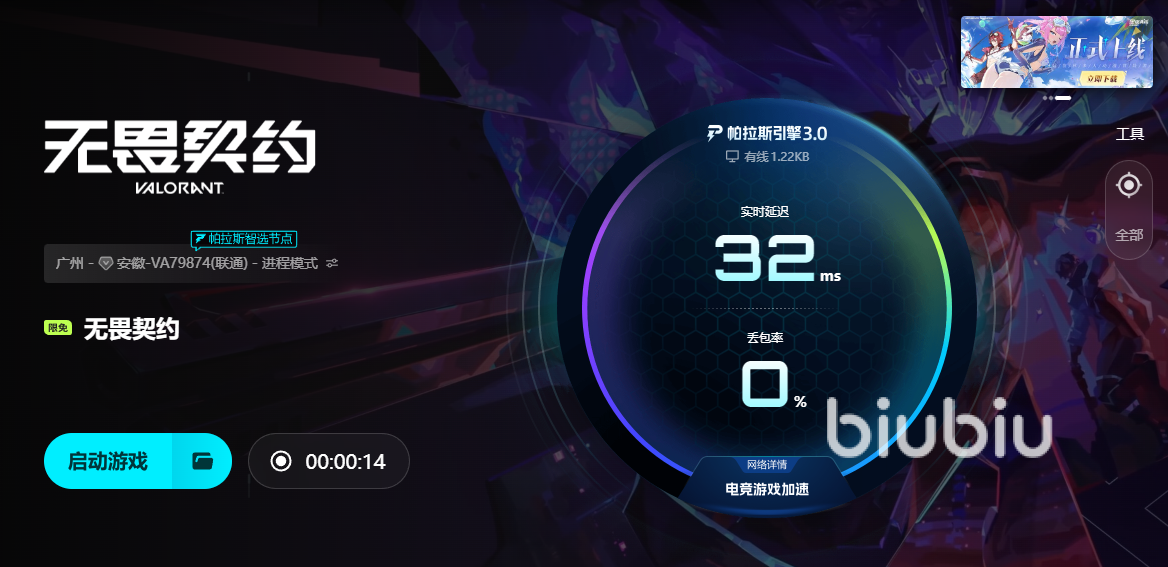 好了,上述便是无畏契约闪退的全部内容了,对于广大小伙伴们而言,若是到时有遇到延迟很高,或者是经常发生丢包以及卡死等状况,那可就是非常的头疼了,所以此时只需点击上文链接来安装biubiu即可,喜欢就抓紧去行动起来吧。