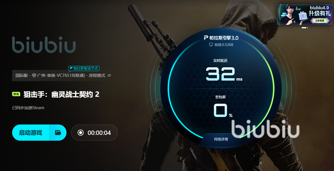 以上便是狙击手幽灵战士契约闪退的全部内容了,对于广大小伙伴们而言,若是自身有遇到延迟高,或时常存在有掉帧等方面问题的发生,那么去选用biubiu这类工具帮自身就十分重要,如此也能让自身到时的游戏体验效果更好,喜欢就抓紧去试试吧。