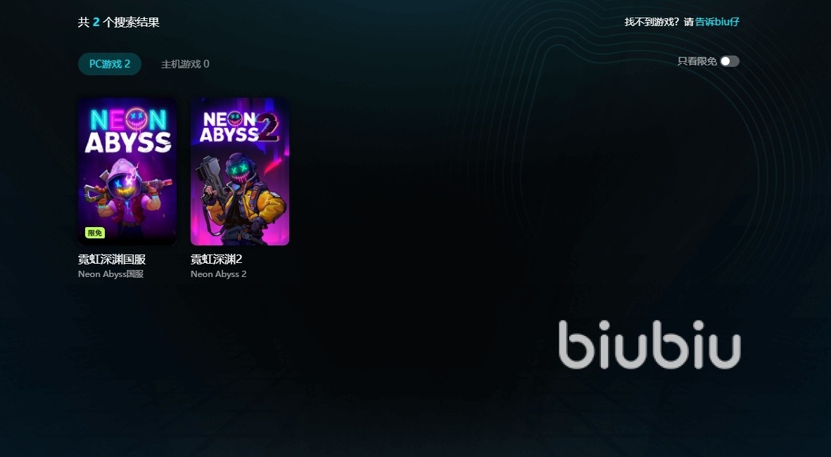 另外,biubiu暑期限免活动正在进行中,7月8日到8月24日期间,精选热门游戏添加限免标签,即点即玩没任何限制,刚刚上线的霓虹深渊2也有机会的哦!关注游戏限免时间,可每日登录biubiu客户端查看。