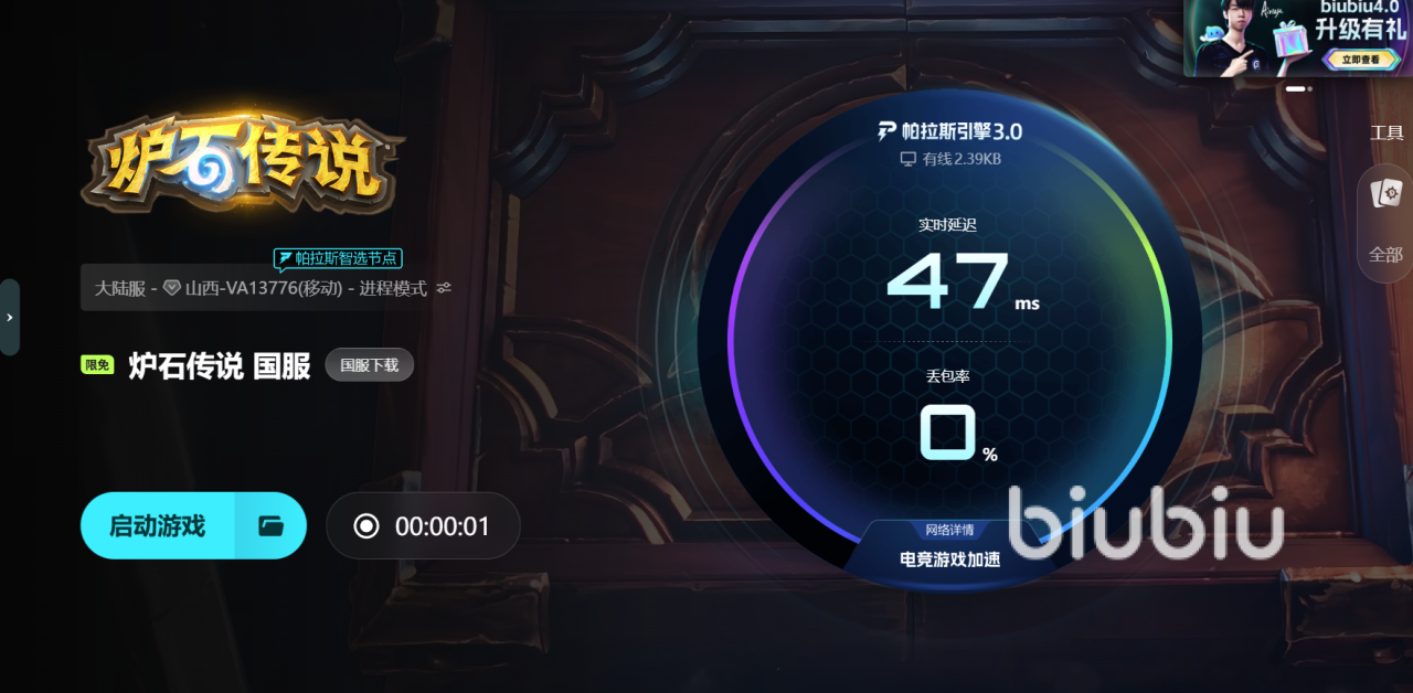 biubiu加速器在进行重磅升级之后,能够有效改善上述这些卡顿问题,它搭载的帕拉斯引擎3.0通过智能分析网络路径,为玩家匹配稳定的传输通道,减少数据交互中的延迟与丢包,让卡牌操作与特效加载更加顺畅。同时,biubiu加速器与冠军选手Aixleft合作,结合高强度对战中的操作需求打磨技术,确保在关键回合的响应速度更加及时。为了让更多玩家体验流畅的对战,新用户可享受24小时免费时长,输入口令【biubiu不卡顿】还能额外兑换72小时免费时长,轻松应对各种对战场景。