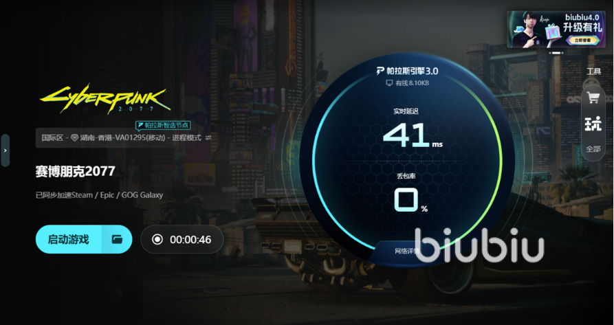 这时,一款高效的网络加速器能够成为玩家的强力助攻。biubiu加速器便是其中表现突出的代表。它不仅适用于多人在线游戏,对于像《赛博朋克2077》这类需要稳定平台通信的单人游戏同样适用。biubiu通过全球部署的智能加速节点和高速通道技术,优化玩家设备与平台服务器之间的连接,有效降低延迟和丢包率。其稳定的数据传输机制可以避免在云存档、成就验证等关键节点出现连接卡顿,从而间接减少由于资源加载延迟导致的掉帧问题。特别是在高峰时段或网络本身不稳定的用户场景下,biubiu的表现尤为出色。