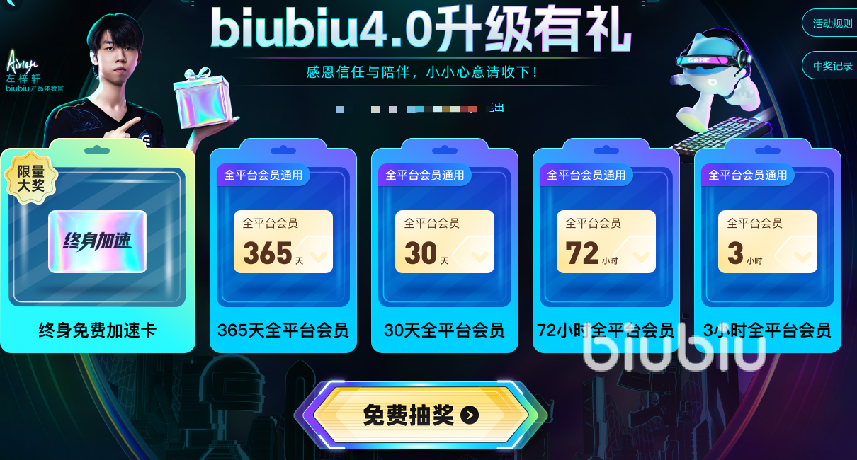 值得一提的是,现在平台再次升级了,和Aixleft共同迎来了帕拉斯引擎3.0,大家还可参与平台活动,免费抽取加速时间,运气好的话还可以获取终身免费加速卡,以后都不需要花钱加速。