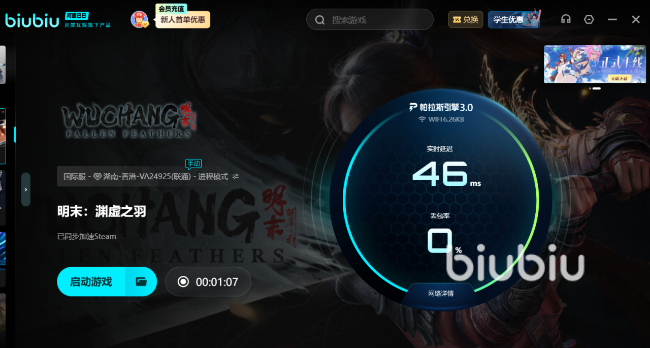 刚好能赶上各大优惠,先是新人专属福利,注册后立马就拥有免费的24小时加速时间用,接着还有口令【biubiu不掉线】给新老用户快速使用,在首页按照流程来就能换到额外的72小时福利时间,新人立刻拥有96小时加速服务时长。