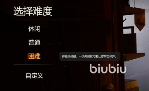游戏的难度现在分为休闲,普通,困难和自定义,在设置时可以调整多项参数,比如能够承受的伤害以及敌人的生命值,以及避难所的防护度,潜行灵敏度等等。若是已有存档的玩家更新之后,难度会默认设置成普通,游戏过程中不可调整难度。