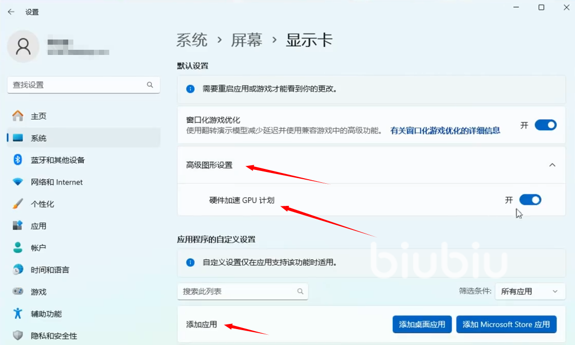 1、在开始菜单搜索并打开“图形设置”。开启“硬件加速 GPU 计划”选项(如果系统支持且稳定)。需要在“图形性能首选项”下,点击“浏览”,找到《明末:渊虚之羽》的游戏主执行文件(通常是 .exe 文件),将其添加。