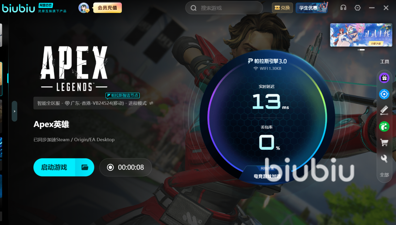 APEX这款游戏服务器设置在了海外,游戏目前还没有国服,国内玩家只能通过连接其他海外服务器的方式才可以登录进去体验,这就导致游戏数据有着非常远的传输距离,自然速度方面比较慢。单纯的连接方式很容易就出现连接失败,连接上之后也会面临延迟高,丢包严重等一系列问题。而加速器可以利用自身的技术优势帮助大家解决,为了获得更好的效果,小编推荐大家使用biubiu加速器。