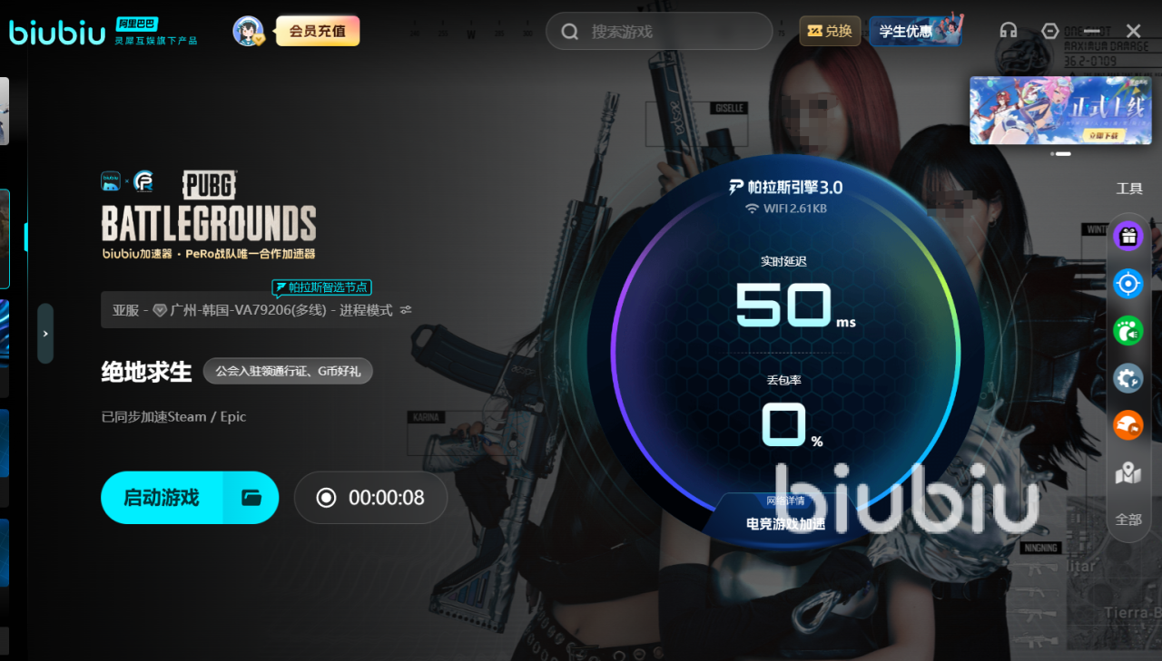 吃鸡全名叫做绝地求生,几乎每一个开局都接近拥有几十人,而玩家就需要在这么多人包围的情况下逃脱而生,除了需要高超的技术以及意识以外,网络也是较为重要的,因为一旦网络不好,跟对面正面对拼的时候会经常卡顿,导致错失战机,被对面直接拿下,成绩方面非常糟糕,那么就可以使用 biubiu 进行全面加速,加速后能减少画面卡顿和操作延迟,并且新一代的 biubiu 加速器重磅升级,同时引入帕拉斯引擎 3.0,最后拥有冠军选手 Aixleft 合力打造的品质,让玩家们的加速体验更舒服