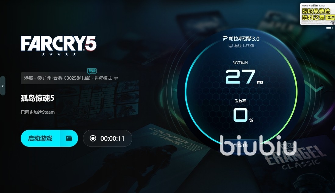 其实很简单,biubiu拥有一手云服务器资源,在全球各地部署了许多游戏专用加速通道,在通过技术方式定位到孤岛惊魂5的服务器地址后,会直接为玩家和服务器之间建立多条快速传递通道,在服务器网络不稳定时,采用多路发包的方式确保游戏数据能足额传输,并及时反馈服务器的处理信息,避免发生闪退问题。