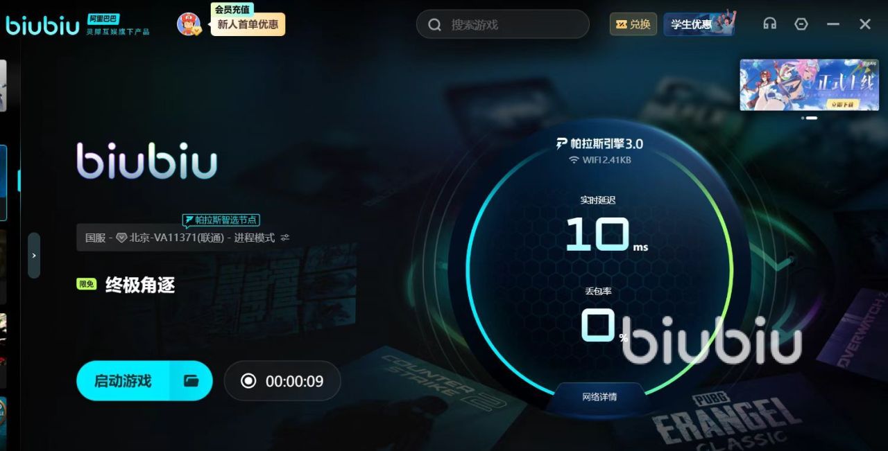 好消息是,现在体验biubiu帕拉斯引擎3.0的门槛极低,新用户完成注册,即可畅享24小时免费加速服务,此外输入【biubiu不掉线】,更可额外再获得3天免费加速时长,总计96小时的全速体验,告别高延迟困扰,让每一次团战操作都丝滑精准。