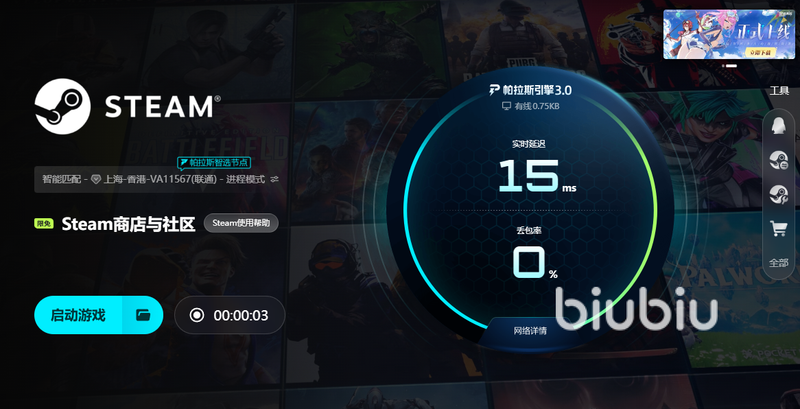 这一次biubiu可是迎来了重磅升级,为大家在加速领域做出来多方面的优化,其中更是贴心的和冠军选手Aixleft合力打造,为小伙伴们引入了帕拉斯引擎3.0,目的就是为了能让小伙伴们到时的游戏感受方面能更好。