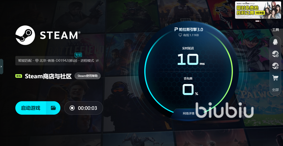 biubiu加速器采用了全球部署的智能加速节点和高速通道技术,能够自动匹配玩家所在的网络环境,显著降低延迟和丢包,提供稳定的网络连接。特别是在进行云存档同步、成就验证等背景操作时,biubiu加速器可以有效降低因为网络波动引起的延迟或卡顿,确保游戏体验的流畅性。此外,biubiu加速器近期推出了帕拉斯引擎3.0版本,biubiu加速器此次重磅升级,力邀PUBG职业联赛冠军选手Aixleft深度参与产品调校。这位顶尖电竞选手从实战角度出发,对加速器性能进行了优化,进一步增强了智能路由和数据调度功能。无论是在网络高峰期还是跨区连接时,biubiu都能提供稳定的加速效果。这对于像《约会大作战:莲反乌托邦》这类需要稳定网络支持的单机游戏尤为关键,即使在较差的网络环境下,biubiu也能确保玩家享受流畅无延迟的游戏体验。