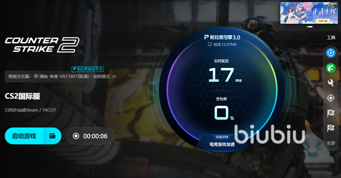 玩家在实际的战斗过程中,如果出现了延迟很高,或者是经常掉帧等问题,那么建议是打开biubiu来帮自己稳定,作为高人气专线加速工具,它的多线路阶段传输与高速专线加速效果,能让玩家在长时间游戏过程中也足够的稳定,更是能去自动选择最优节点,确保跨线路传输方面的稳定。