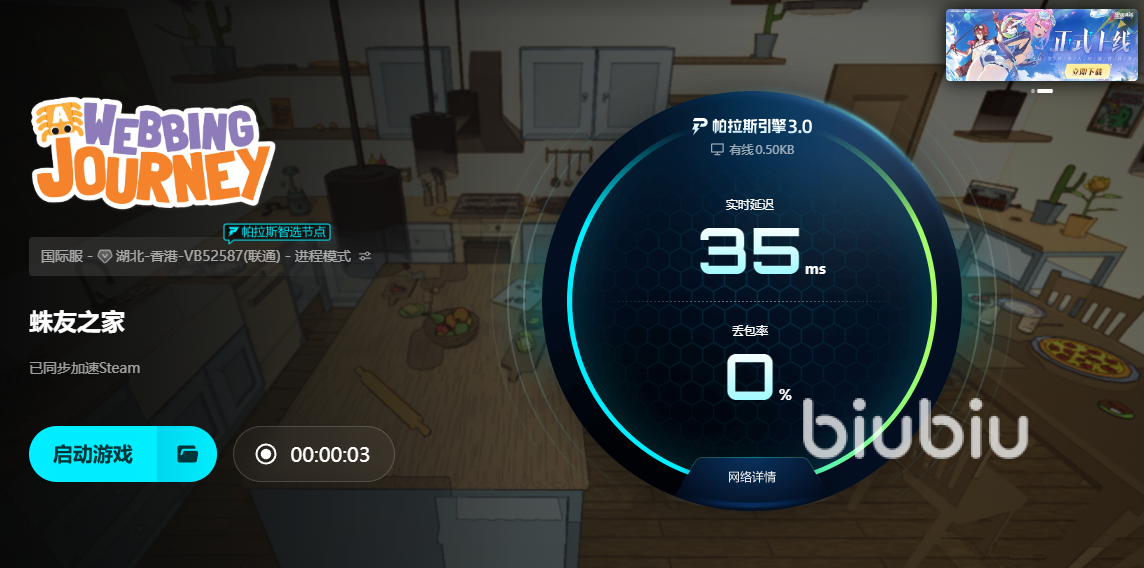 好的游戏加速器,特别是AWebbingJourney这类游戏,所需要的加速器,就是要能解决服务器问题,也能解决本地网络问题,这里推荐大家使用近期刚完成重大升级的biubiu加速器。拥有国内一线云服务器大厂资源的biubiu加速器,已经完成全球部署,拥有大量游戏专用的网络通道,掌握定位全球游戏服务器的技术,通过定位AWebbingJourney服务器地址,可为玩家建立客户端到服务器之间的专享通道,当服务器异常时,为确保玩家数据能完整传达,将启动多路发包技术,把数据直接传送到服务器里面,速度快,传送率高的技术,让玩家再也不怕服务器问题,无论是在登陆还是在游戏中,都能做好保护。