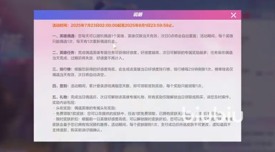 心动之箭活动为每位英雄量身打造了丰富细腻的多线互动剧情,将在精美的原创插画环绕下,深入探索迥异的性格与背景故事,重温类似恋恋先锋般的轻松甜蜜氛围。推进并完成不同角色的专属剧情线,不仅能收获限定头像框,更有可能解锁英雄限定皮肤等珍贵战利品,所有精彩内容均需通过游戏内完成任务逐步解锁,具体规则以最新公告为准。