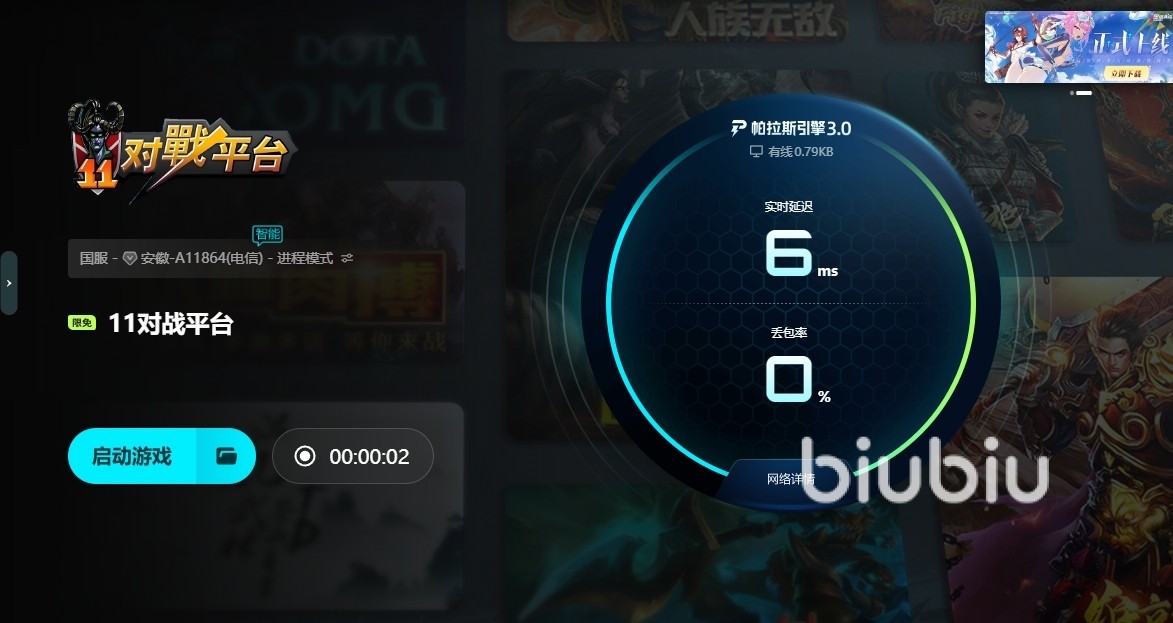 总之,适合11对战平台的游戏加速器,对于解决其打开魔兽进不去的问题,主要还是通过提升其服务器网络稳定性,提高本地网络环境为主,当然可能还有其他原因,比如显卡、游戏文件丢失等,这些目前来看都是不多见的问题,毕竟魔兽争霸作为486时代的游戏,其对配置要求并不是太高。以上就是小编整理的“11对战平台魔兽进不去游戏什么原因”内容,最后提醒大家,想要11对战平台获得biubiu加速器效果,需要通过biubiu启动11对战平台才可。