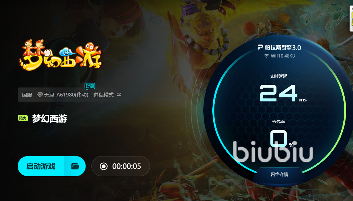 在这方面,biubiu加速器无疑是一个值得推荐的解决方案。它是一款针对游戏数据传输场景深度优化的专业加速工具,覆盖海量主流与冷门游戏,当然也包括《梦幻西游》在内的老牌国产游戏,引入最新升级的帕拉斯引擎3.0。这款新引擎不仅采用了多链路动态调度机制,还能根据不同网络节点负载情况进行实时切换,自动寻找最优路径,让用户即便在高峰期也能保持稳定低延迟连接。不仅如此,biubiu还联合竞技冠军选手Aixleft共同打造此次技术升级,从职业玩家的角度出发,调整延迟容忍机制和数据回传频率,让梦幻西游这类高频互动游戏在关键场景中也能顺畅进行。