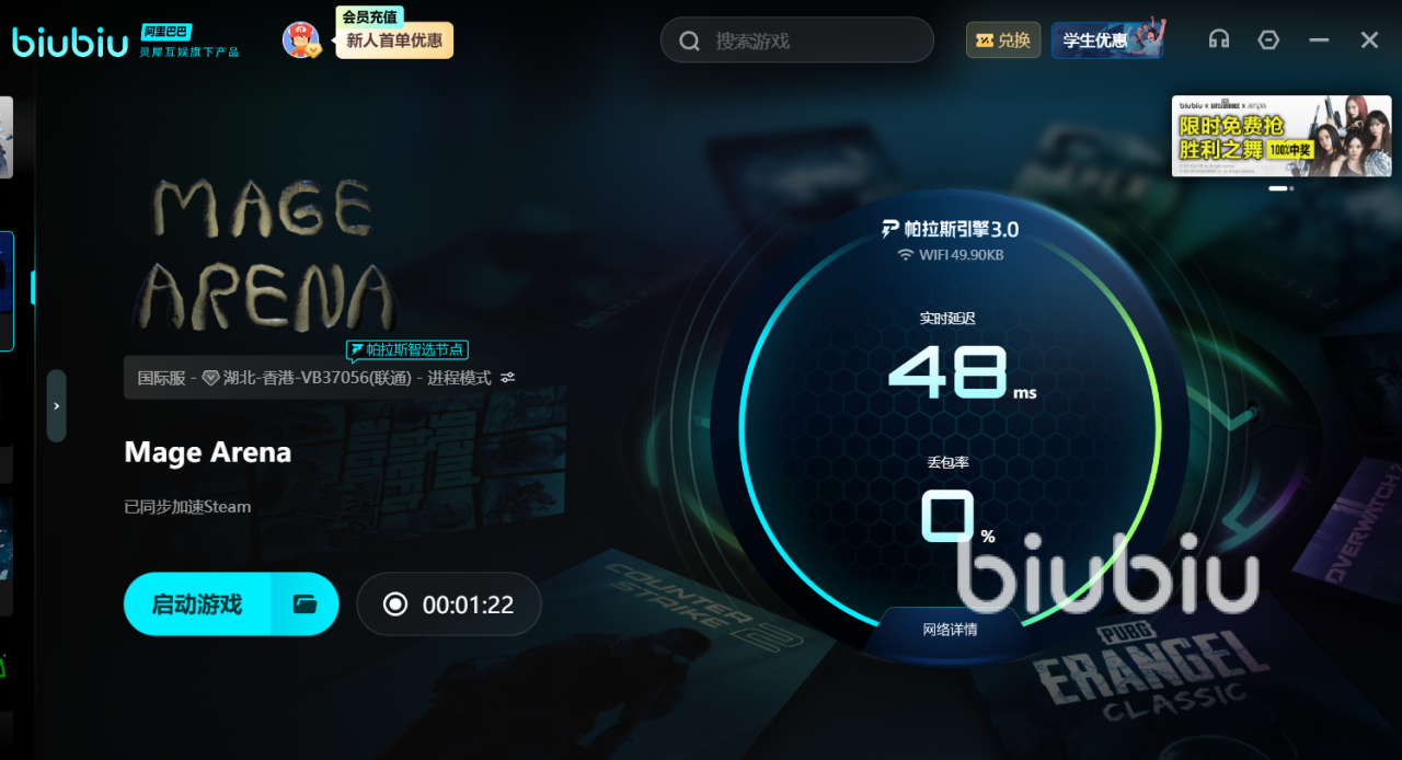 本次biubiu的核心升级是携手顶尖电竞赛事选手Aixleft联合开发完成,专为MageArena等大型竞技游戏定制。智能引擎自动识别全局加速需求,绕行网络拥堵节点,极大增强对局顺滑感与响应速度。