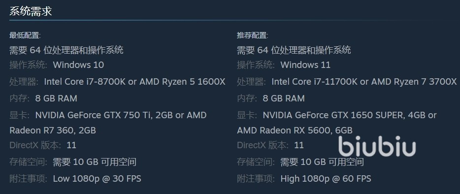 对于追求更高画质和更流畅体验的玩家,推荐配置Windows 11,AMD Ryzen 7 3700X处理器能够轻松应对游戏的高负载需求。内存8GB RAM依然是标配,但建议升级到16GB。显卡AMD Radeon RX 5600能够支持高画质下的流畅运行,存储空间方面,10GB的可用空间依然是基本要求。