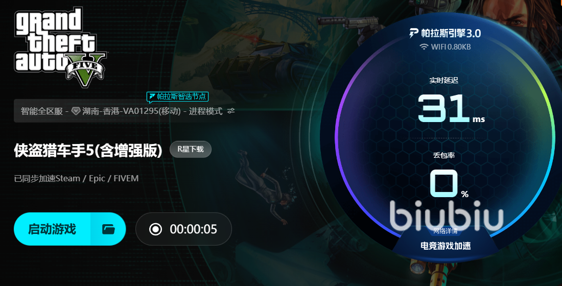 首先,确保你的电脑硬件配置满足《GTA5》的最低要求,特别是显卡和处理器的性能。如果硬件配置没问题,那问题很可能出在网络连接上。许多玩家在启动游戏后遭遇闪退的原因,往往和网络不稳定、延迟过高、或者与游戏服务器的连接问题有关。这种情况下,使用一款强大的游戏加速器就显得尤为重要,biubiu加速器便是其中的佼佼者。biubiu通过优化网络连接,确保你的数据流畅传输,避免卡顿和掉线,甚至可以帮助你绕过一些因地域限制而无法顺畅连接的服务器问题。特别是在《GTA5》这种需要高频率与服务器互动的游戏中,biubiu能够显著减少因网络波动导致的游戏闪退或卡顿现象。