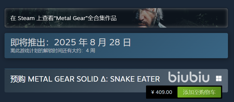 合金装备3重制版发售日期哪天 合金装备3重制版上线时间介绍