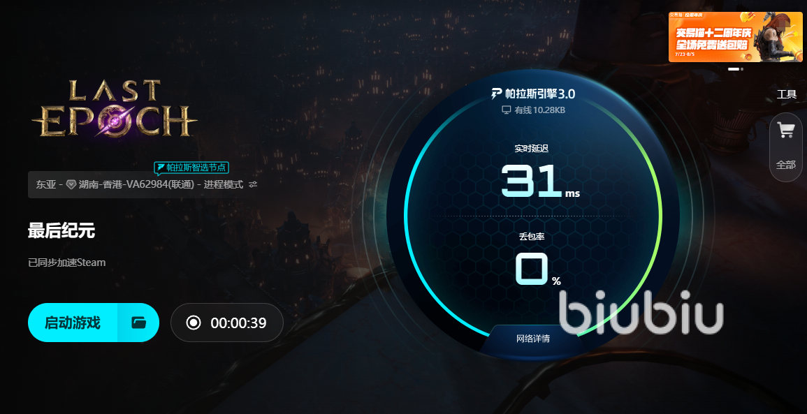 在当今广大用户的使用场合来看,biubiu的表现可是很出色的了,这一次更是迎来了重大的升级,并与冠军选手Aixleft合作打造,特别引入了先进的帕拉斯引擎3.0,不仅仅是提升了我们在游戏运行方面的稳定性,更是有效解决了延迟高、丢包等困扰。