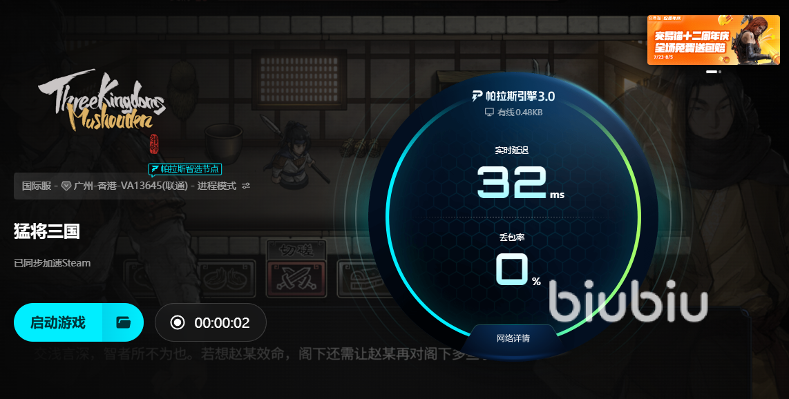 总之,无论猛将三国闪退怎么办,大家先使用biubiu加速器修复网络问题,稳定网络后,一般可以正常登录和打游戏,保障了游戏在稳定的网络中稳定运行,闪退问题自然就会减少。其他问题,可酌情根据弹窗内容来解决。以上就是小编整理的关于猛将三国闪退的解决方法,希望能帮到大家。