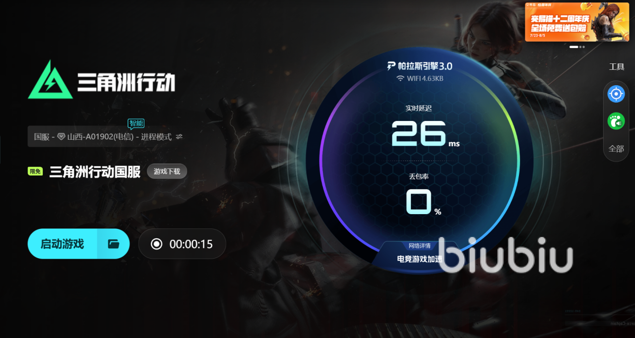 除了上述闪退的原因,如果网络环境不稳定也可能会导致三角洲客户端闪退,因为这类fps类型的游戏在加载地图时,需要与服务器进行数据交换,如果网络质量不好就会出现延迟或丢包的问题,这样就可能导致加载中断,以至于出现闪退的情况,那么在这种情况下,biubiu加速器就成为了解决问题的有效方法,它通过部署多节点线路缩短服务器连接路径,从根源上减少闪退情况的发生。