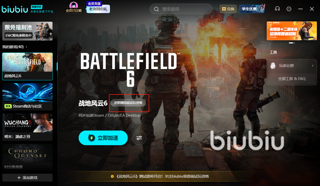 看到这么多内容,大家等不及想参与,可以来biubiu加速器这里,关注加速专页可以得到参与提前试玩活动的方法。而且测试期开展限免加速活动,各位还能享受优质网路优化效果。