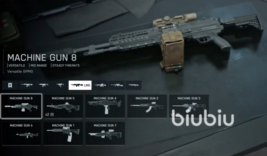 轻机枪:中近距离作战时,可以发挥弹匣容量多的特点,造成强大的火力压制效果,开放了8种型号。