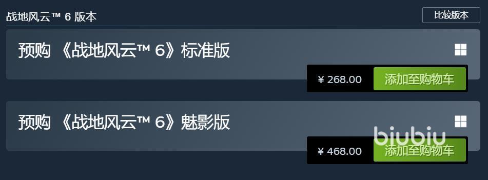 相比部分3A游戏涨价的情况来说,战地6仍维持传统定价,标准版268、魅影版468,性价比突出,EAPlay会员还可享受额外10%折扣,进一步降低入手门槛。而且大家要注意一下,游戏的版本区别中并没有测试门槛区分,也就是说都是可以进行提前进入测试的。而且内容非常丰富,收藏价值拉满。
