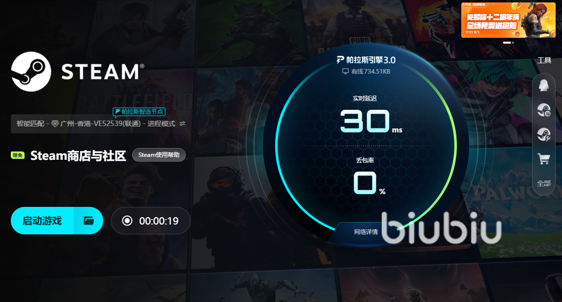 而根据小编的了解,这款注重细节刻画与大规模同屏战斗的作品,到时势必对各位的网络稳定性有着很高的挑战,如果说网络方面延迟很高,或者经常发生掉帧等可就很难受了,好在这时,biubiu的出现就能很好地为玩家来解决这些难题。