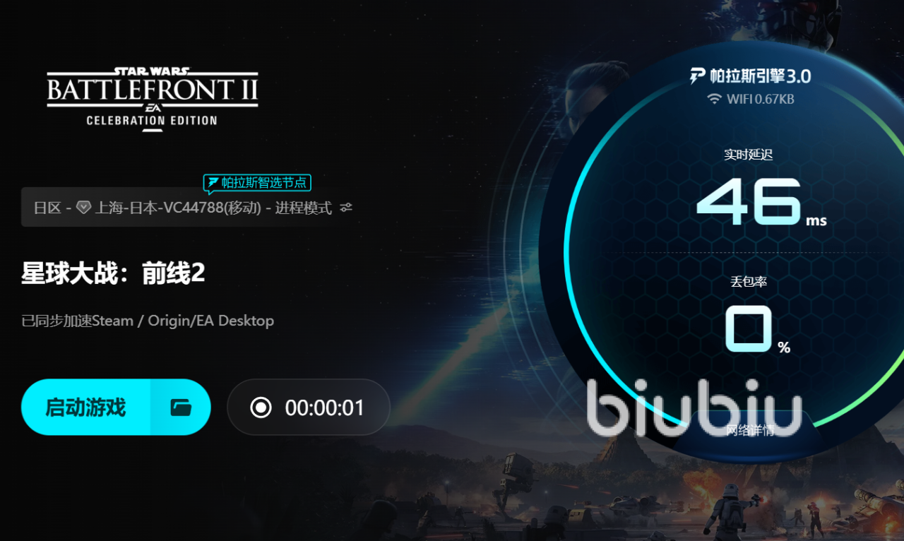 2025年08月05日 19:09 来源:毒液左孙悟空玩《星球大战前线2》时,正准备操控绝地武士挥舞光剑,结果却遇到登陆困难,星球大战前线2进不去游戏怎么办?别急,biubiu加速器来帮你!biubiu专为大型多人在线游戏打造,智能优化网络线路,有效降低延迟和丢包,帮你轻松穿越网络黑洞。无论是激烈的40人大乱斗,还是太空大战中高速飞船穿梭,biubiu都能确保你畅快体验银河系的激战。再也不用为卡顿、断线烦恼,操作流畅、连接稳定,让你秒进游戏,秒杀敌人。带上biubiu加速器,开启你的星战传奇,体验星球大战的浩瀚与热血吧!