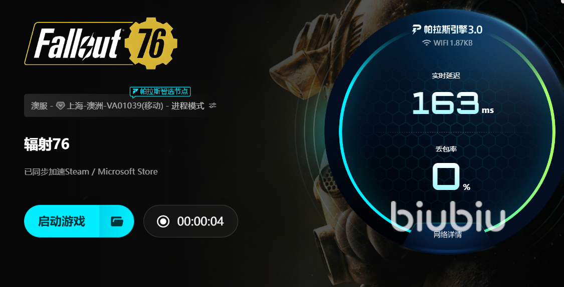 对于新用户,biubiu提供24小时免费加速;【biubiu不卡顿】还能额外领取72小时时长,合计96小时的免费体验足以覆盖多次长线冒险,让玩家充分感受低延迟带来的操作提升。操作上,biubiu也做到了极简——下载安装后,在搜索栏找到“辐射76”,一键启动加速即可,无需复杂设置,系统会自动根据当前网络环境切换最优节点,即便是不熟悉加速器的玩家也能轻松上手。