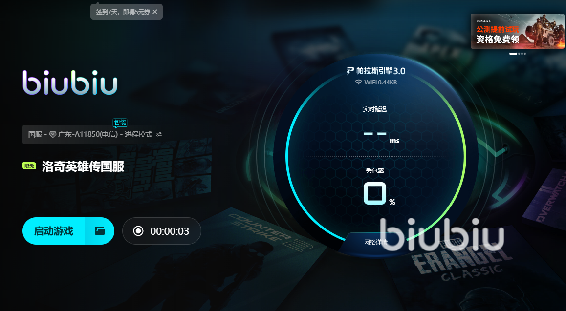 biubiu加速器重磅升级,引入冠军选手Aixleft合力打造,引入帕拉斯引擎3.0,还自动显示加速效果。biubiu奉上免费福利,新人第一次登录获得24小时加速时长,还能通过【biubiu不卡顿】延长3天加速时间,抢先体验biubiu超快加速效果。