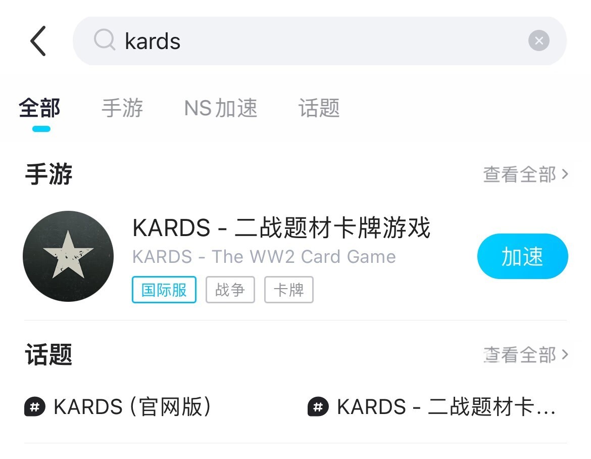 对于操作方面也十分的便捷方便,在软件内搜索并选择KARDS,点击“加速”即可完成设置,全程无需复杂配置,适合各类用户群体。其后台支持多通道并行传输,确保在不同网络环境下都能维持高效连接。同时除了提供优化服务外,如果大家在任务的时候遇到了高难度的关卡,还可以到对应的社区查看其他伙伴攻略分享。