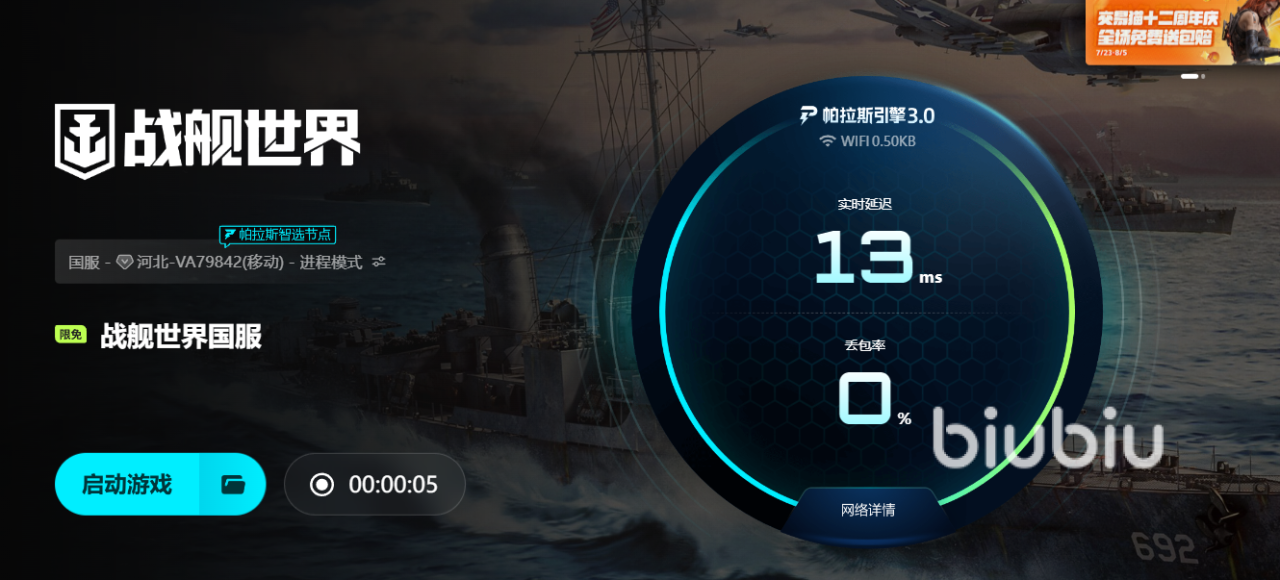 biubiu加速器便是解决《战舰世界》闪退问题的理想选择。能让玩家跨越各种网络障碍,享受流畅的游戏体验。对于《战舰世界》这类大规模在线多人游戏,biubiu加速器的加速效果尤为显著,能够保证玩家在海外服务器上的稳定连接。