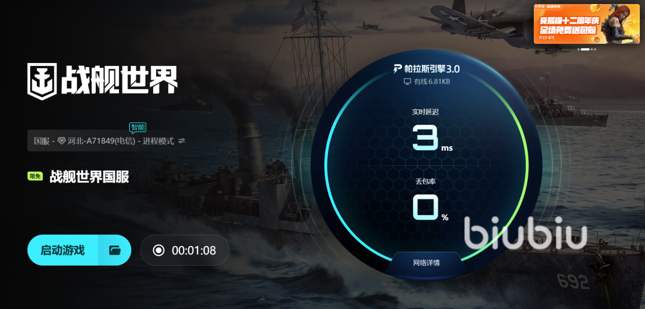 在解决战舰世界闪退问题的同时,想要让联机海战更流畅,biubiu加速器刚好能够满足小伙伴们的需求,新用户注册后可获得24小时免费时长,输入【biubiu不卡顿】还能额外兑换72小时免费时长,与冠军选手Aixleft共同打造后时biubiu加速器引入了帕拉斯引擎3.0,迎来重磅升级,能够确保在舰队对决或抢占海域时网络顺畅,让小伙伴们专注于战术部署,尽情享受海上对战的激情。