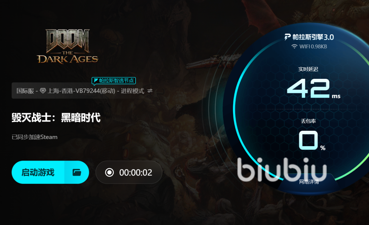 2025年08月07日 19:26 来源:冥王本猫老大不少玩家刚准备踏入《毁灭战士:黑暗时代》的地狱嘉年华,结果一开局就被“毁灭性”打击——游戏卡在加载界面,或者反复连接服务器失败,简直比恶魔还难缠!毁灭战士进不去游戏怎么解决?此时就该请出神器biubiu加速器,用了biubiu之后,登录不卡、匹配飞快,就像主角拿上链锯,一路顺劈不卡顿。更妙的是,biubiu还自带电竞级节点优化,哪怕你人在地球的另一端,也能像坐在服务器旁边一样丝滑开砍,格挡、弹反、跳劈全程跟手,再也不怕断线让恶魔溜了。哪怕后期关卡再重复,有biubiu保驾护航,你也能盾锯在手,割草到底!
