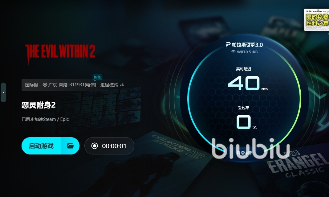 总之,想要解决恶灵附身2掉帧怎么办的问题,最好的方法就是安装biubiu加速器,为游戏提高本地网络稳定性,提升服务器的连接效率,为游戏搭建稳定的网络环境,因为有数据表明,70%以上的掉帧及其他常见问题,多与网络密切相关。