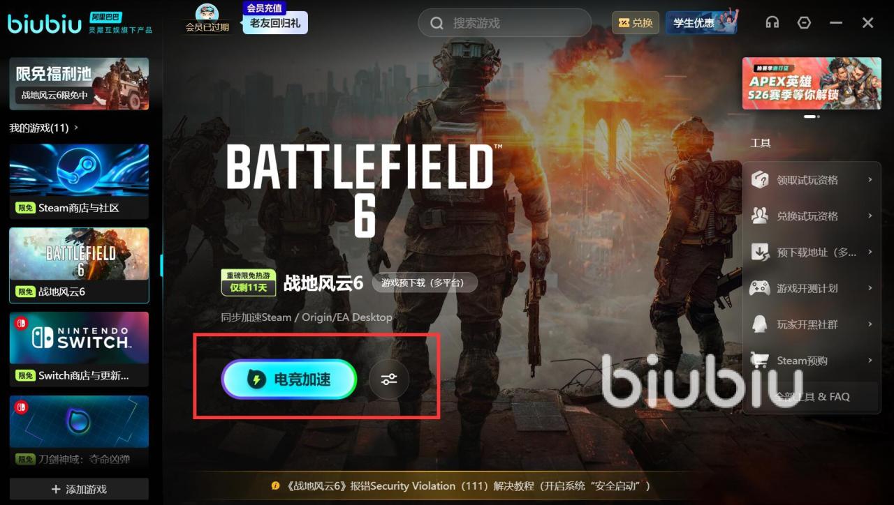 对于想要在战地6中制霸战场的玩家来说,稳定的网络环境比枪法更重要。无论是预载游戏时的提速,还是实战中的低延迟保障,biubiu加速器都能提供电竞级优化。现在领取96小时免费时长,即可在龙卷风席卷战场时抢占先机,在门户模式的经典对枪中一击制胜,真正享受战地6的史诗级战斗体验。