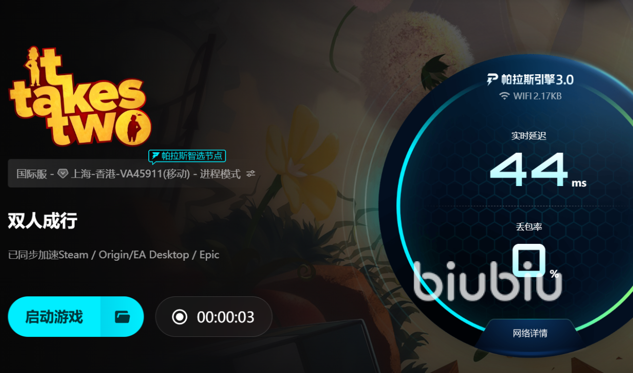 2025年08月08日 11:52 来源:月刃及布玛在《双人成行》良好的合作是过关的关键,然而如果你在与朋友或另一半的配合中遇到卡顿和延迟问题,那将彻底破坏游戏的体验。双人成行加速器哪个效果更好?biubiu加速器是你最好的选择!无论是解谜还是进行紧密的合作,每一秒都至关重要,特别是在需要精准操作的关卡中,biubiu加速器能够确保你不会错失任何一个关键时刻,避免掉线或卡顿的干扰。选择biubiu,让你们的冒险不再受网络干扰,感受更加流畅的合作之旅!