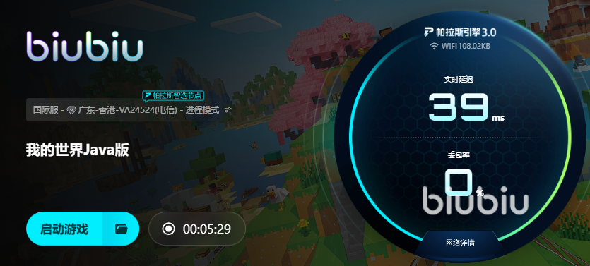 2025年08月08日 11:40 来源:紫叶无海刺龙我的世界Java版加速器用哪个?玩这个游戏最头疼的就是网络问题,联机老是连不上,好不容易挤进服务器,结果因为延迟太高,动不动就被其他玩家偷袭,装备爆了一地,因此这时候就需要biubiu来帮忙了,能有效解决卡顿、延迟、掉线这些烦心事,让大家能自由自在的在游戏中搭建自己喜欢的世界。