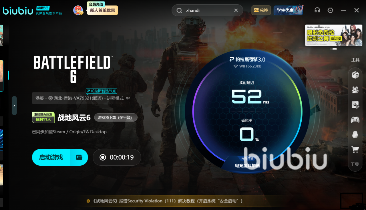 为了让玩家零门槛畅享战地6战场,biubiu送上开服豪礼,整个测试期内均可限时免费提速,还送抢先测试资格,每日均可参与抽奖。另外,新用户登录直接获赠24小时免费加速时长,此外输入【biubiu不掉线】,再得72小时加速特权,双福利叠加,可畅玩4天,足够玩家酣战整个测试周期。