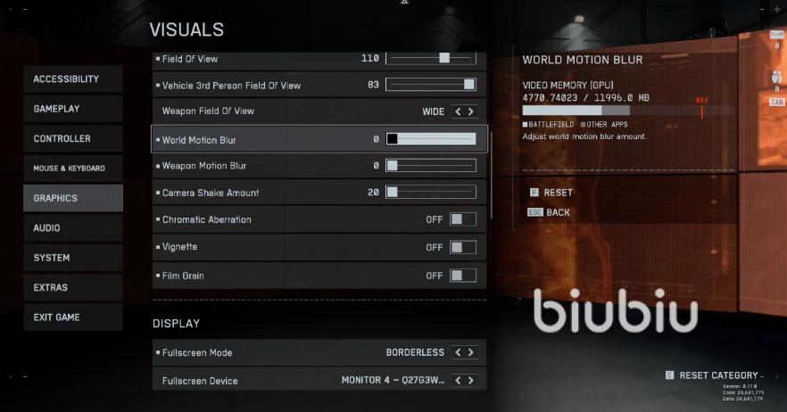 相机抖动(Camera Shake):降至10-20(默认30+),降低沙尘暴中的镜头晃动幅度,维持瞄准稳定性。