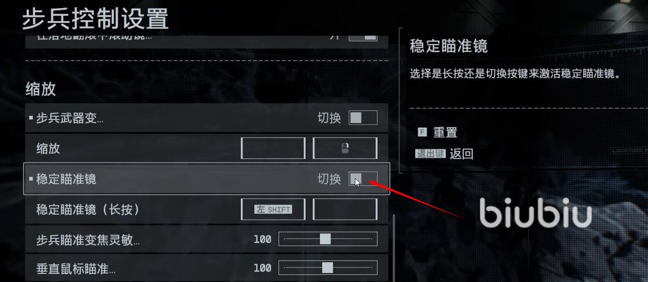 开镜模式:在“武器变焦/稳定变焦”中改为切换模式,减少长按操作负担。