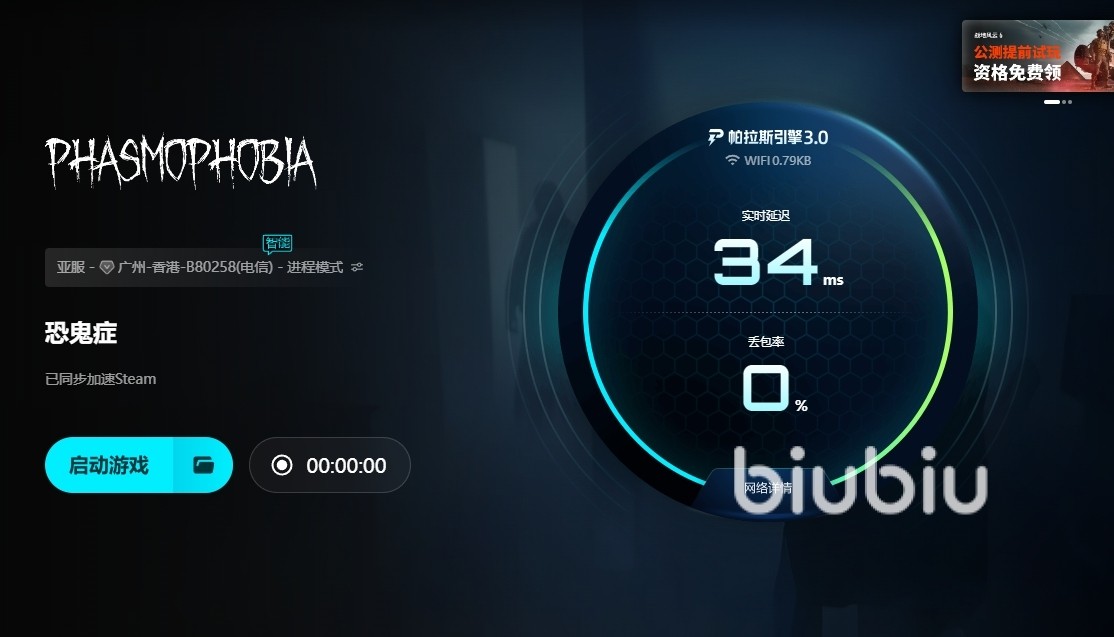 以上就是小编整理的“恐鬼症进不去怎么办”的所有内容,不难看出解决网络问题在使用biubiu加速器后变得很简答,另外,根据调查显示,解决了网络问题后,有超过70%的网络问题都能得到完美解决。最后,提醒一下恐鬼症玩家,如果想要游戏获得加速效果,就需要在启动biubiu加速器后 ,通过加速器启动游戏才能有效哦!